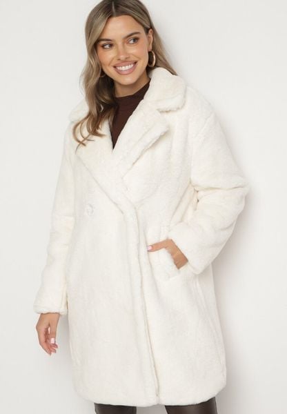 Jasnobeżowy Płaszcz ze Sztucznego Futra Kairaelle