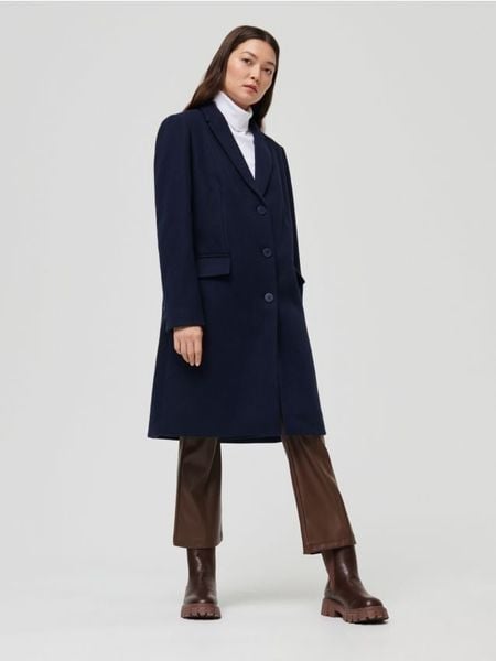 Sinsay – Długi płaszcz z domieszką wełny – granatowy –