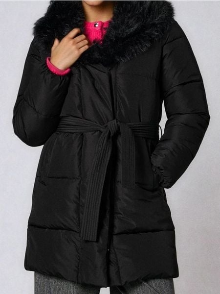 Sinsay – Pikowany płaszcz z futerkiem – czarny –