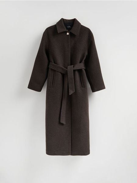 Płaszcz z wełną Manteco – ciemnobrązowy
