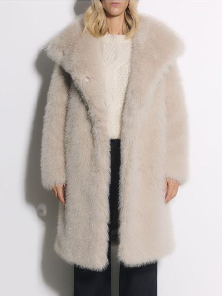 Płaszcz o prostym kroju, wykonany ze sztucznego futra.