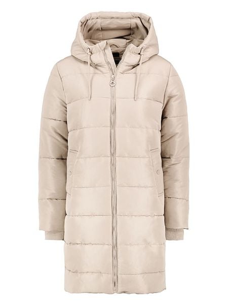 Beżowa Długa Kurtka Pikowana Płaszcz Mocno Ocieplona z Nieodpinanym Kapturem Naliope
