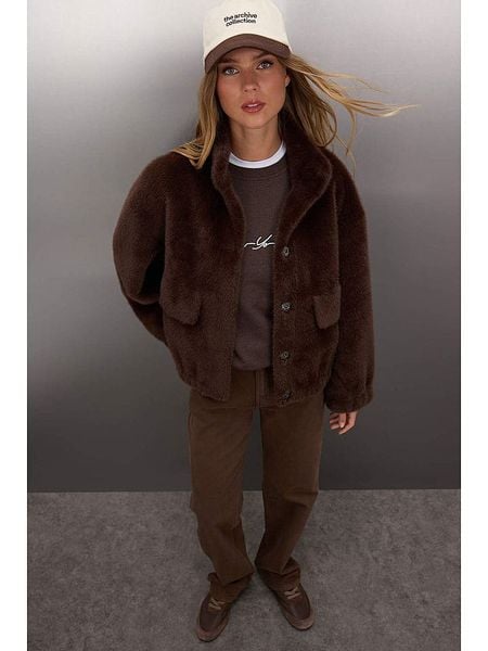 trendyol Płaszcz pluszowy w kolorze ciemnobrązowym rozmiar: M