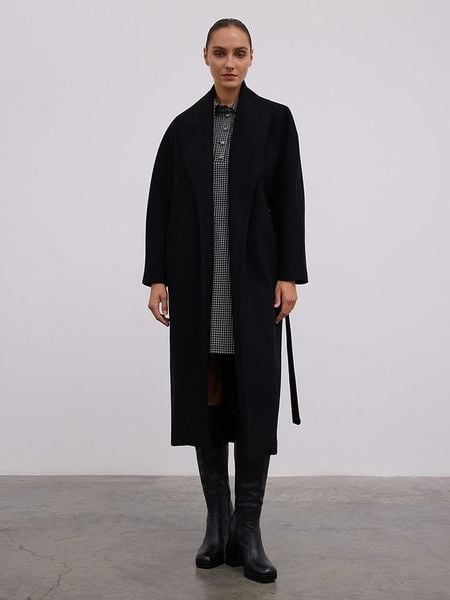 – z dodatkiem wełny- kołnierzyk: z klapami- zapięcie: sznurowanie- kieszenie: wpuszczane- krój: prosty- look: jednokolorowyUwaga: Przy wyborze właściwego wariantu zaleca się korzystanie z tabeli rozmiarów.