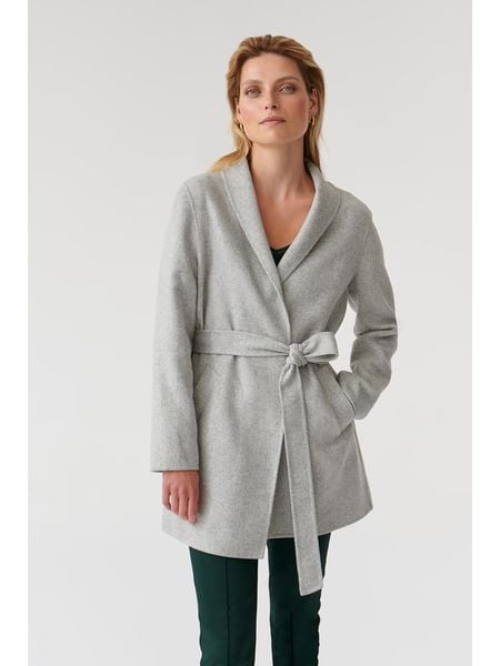 – z dodatkiem wełny- kołnierzyk: z klapami- zapięcie: wiązanie- kieszenie: wpuszczane- krój: prosty- look: jednokolorowy