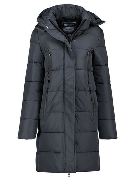 – właściwości termoizolacyjne- kaptur: przymocowany ściągacz tunelowy- kołnierz: stójka- zapięcie: kryty zamek błyskawiczny- zasuwane kieszenie boczne: 4- dolny brzeg: skrócony zamek błyskawiczny- krój: prosty- look: jednokolorowy, pikowany