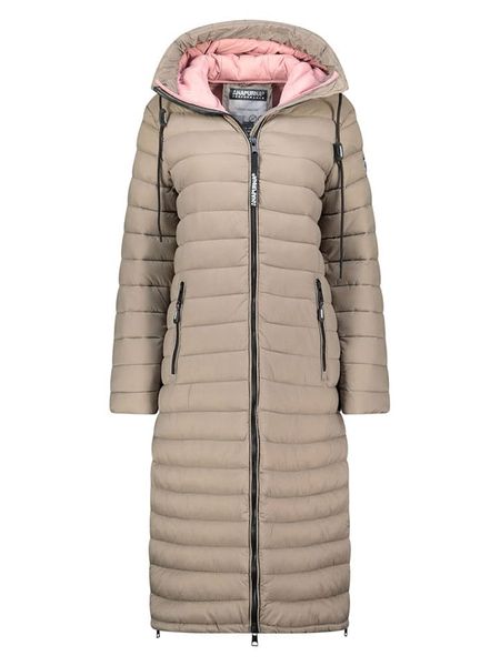 Beżowa Długa Kurtka Pikowana Płaszcz Mocno Ocieplona z Nieodpinanym Kapturem Naliope