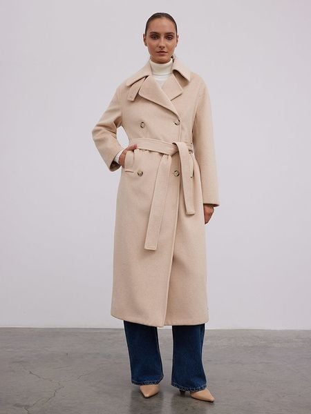 – z dodatkiem wełny- kołnierz: kent- zapięcie: dwurzędowa listwa guzikowa- zdejmowany pasek: tkanina- naszyte kieszenie: 2- krój: prosty- look: jednokolorowyUwaga: Przy wyborze właściwego wariantu zaleca się korzystanie z tabeli rozmiarów.