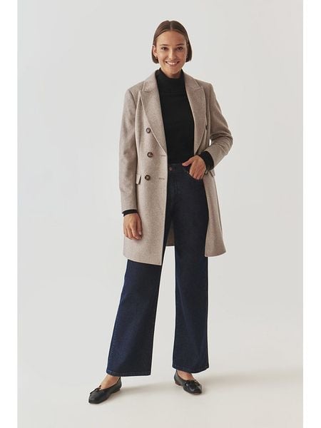 – z dodatkiem wełny- kołnierzyk: z klapami- zapięcie: dwurzędowa listwa guzikowa- zakończenie rękawów: patka i guzik- zdejmowany pasek: tkanina- kieszenie z patką: 2- krój: luźny- look: jednokolorowy