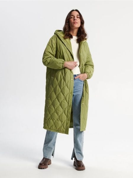 Płaszcz pikowany z kapturem.