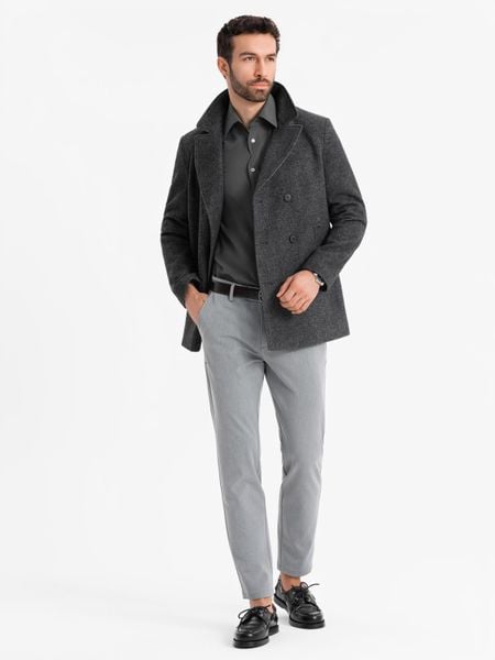 Krótki dwurzędowy męski płaszcz z wełną – grafitowy V1 – Rozmiar: XXL
