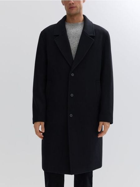 Płaszcz o regularnym kroju, wykonany z tkaniny z dodatkiem wełny.