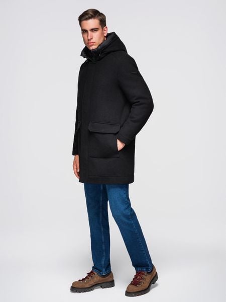 Płaszcz męski parka z wełną i kapturem – czarny V1 – Rozmiar: XXL