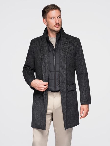 Długi rozpinany męski płaszcz z wełną – grafitowy V2 – Rozmiar: XL