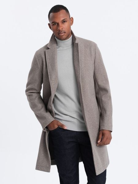 Strukturalny dopasowany płaszcz męski z wysokim kołnierzem – jasnobrązowy V4