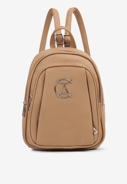 Ciemnobeżowy Elegancki Plecak z Regulowanymi Szelkami i Metalową Aplikacją Ravanessa