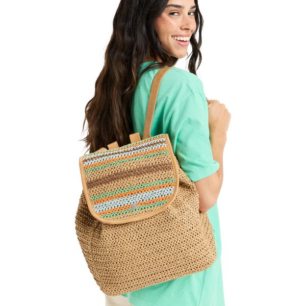 Plecak dla kobiet. Cechy: Materiał: mieszanka słomy w jakarcie z paskami z wegańskiej skóry, metalowa plakietka Roxy hibiskus, Wymiary: 30 cm [W] x 27,5 cm [S] x 14 cm [G].. Ocena: Tags: Kobieta Akcesoria damskie Plecaki damskie Kolor: Beżowy Rozmiar: Przeznaczenie: female Marka: ROXY