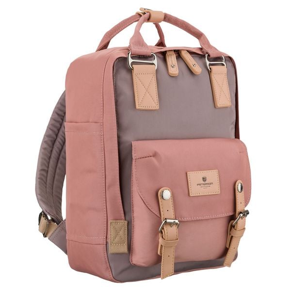 Różowo-szary plecak damski z poliestru i skóry ekologicznej, jednokomorowy – Peterson