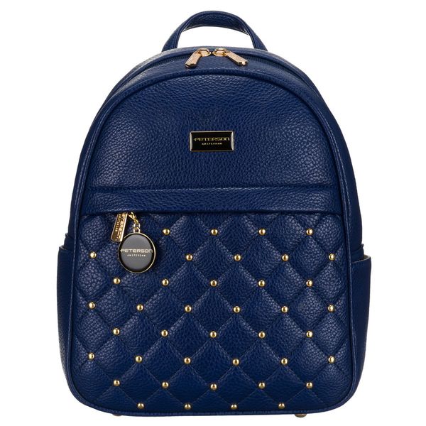 Niebieski, modny, pikowany plecak damski ze złotymi nitami i modnym brelokiem eko skóra Peterson