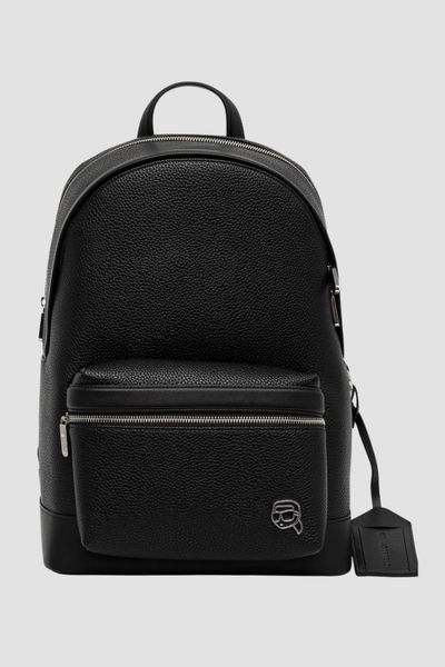 KARL LAGERFELD Czarny plecak męski ze skóry ekologicznej Ikon
