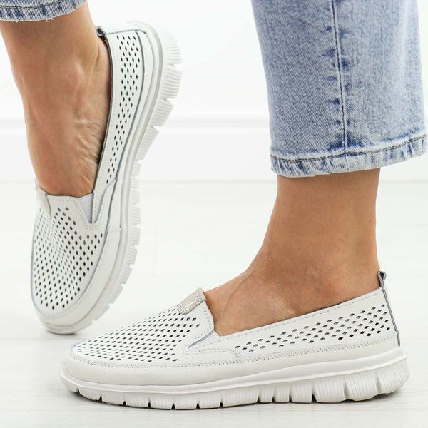 Białe ażurowe skórzane półbuty damskie Jezzi 6870