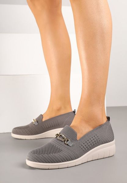 Szare Półbuty na Koturnie z Ozdobą i Cyrkoniami Neviae