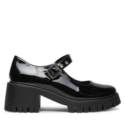 Czarne Lakierowane Półbuty Na Wysokim Słupku i Platformie ze Skórzaną Wkładką Cerdiss