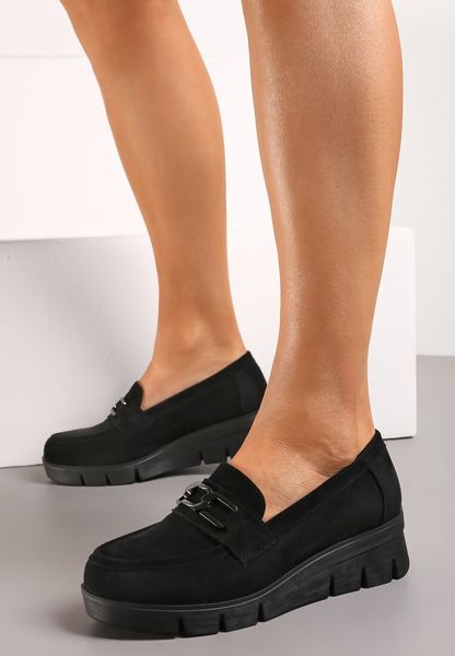 Czarne Półbuty w stylu Mokasynów z Metalową Klamrą na Niskim Koturnie Itavil