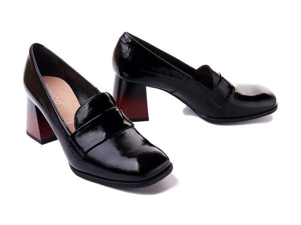 Półbuty damskie. Naturalna skóra. System SoftStep. Wygodny, stabilny obcas typu klocek. Tęgość G.