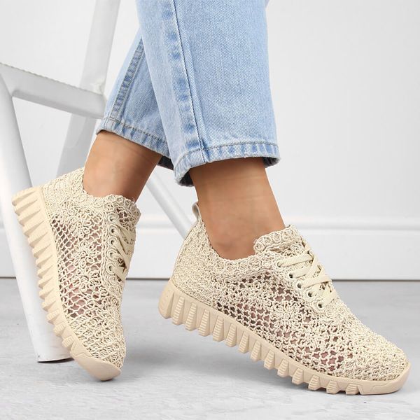 Półbuty damskie sportowe koronkowe beżowe T.Sokolski 1982