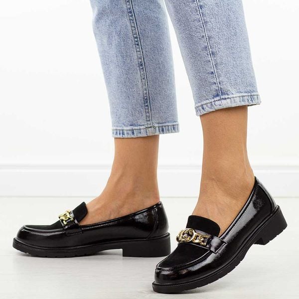 Czarne lakierowane półbuty damskie toeleganckie i stylowe obuwie na wiosnę, lato oraz jesień. Cholewka wykonana z połączenia materiału lakierowanego i zamszowego nadaje im wyjątkowego charakteru. Efektowna, złota ozdoba umieszczona na przodzie buta przyciąga uwagę i dodaje wyrafinowanego wyglądu. Model wsuwany zapewnia wygodę zakładania, a miękka wkładka gwarantuje komfort noszenia przez cały dzień. Półbuty posiadają płaski […]