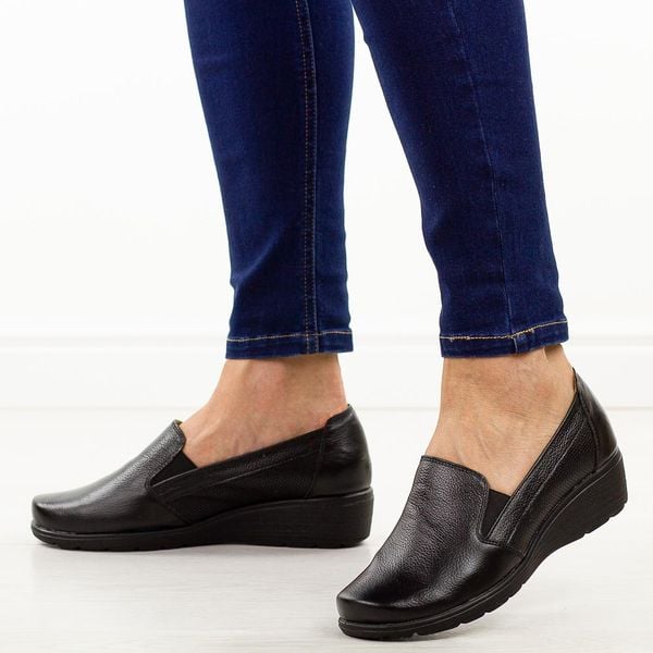 Czarne skórzane Polskie półbuty damskie na koturnie Deoni D540a