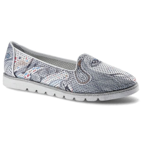 Półbuty damskie Lanqier, ażurowe wsuwane i na płaskiej podeszwie, białe, 38C334