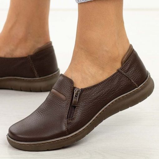 Czekoladowe skórzane półbuty damskie na wiosnę i jesień to połączenie elegancji, wygody i najwyższej jakości. Te półbuty damskie wykonane są z naturalnej skóry w modnym odcieniu kawy, co gwarantuje ich trwałość i stylowy wygląd. Cholewka butów zapinana jest na praktyczny suwak, a okrągły nosek zapewnia komfort nawet podczas długiego noszenia. Wnętrze półbutów wykończone jest tkaniną oraz […]