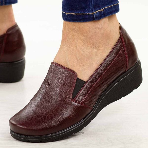Bordowe skórzane Polskie półbuty damskie na koturnie Deoni D540a