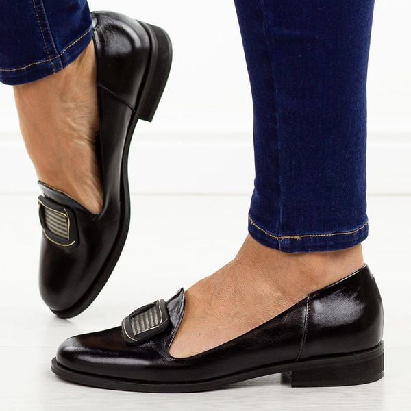 Czarne naplak skórzane Polskie półbuty damskie Deoni D111A