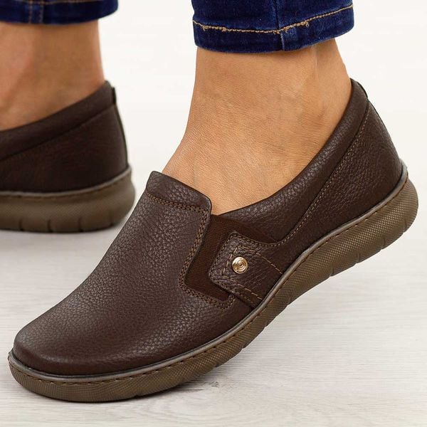 Brązowe skórzane Polskie półbuty damskie Deoni 623