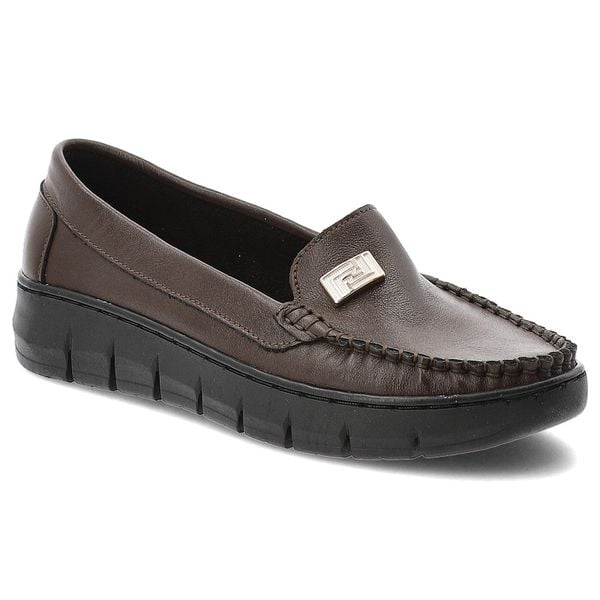 Półbuty damskie Armodo, mokasyny na płaskim obcasie i ze skóry naturalnej, czekoladowo-złote, 10167-S-Czekolada-Zl