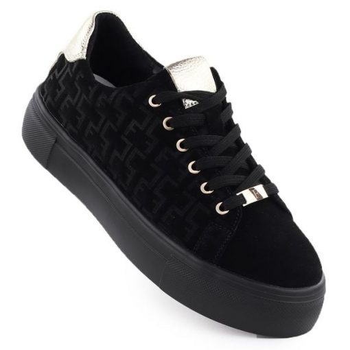 Skórzane półbuty damskie sneakersy na platformie czarne Filippo DP6850