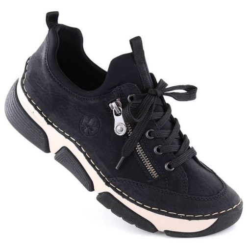 Komfortowe półbuty damskie czarne Rieker 45973-00