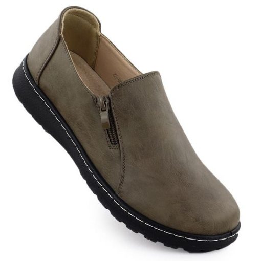Półbuty damskie na suwak khaki Potocki 25-90352