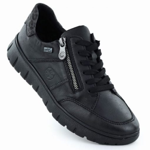 Skórzane półbuty damskie sportowe czarne Rieker N1301-01