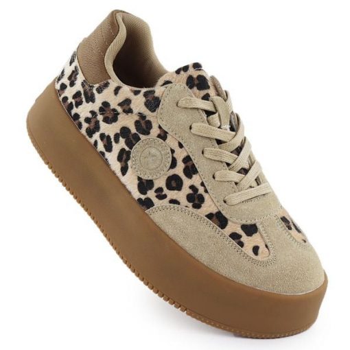 Półbuty zamszowe damskie w panterkę na platformie beżowe Big Star SS274763