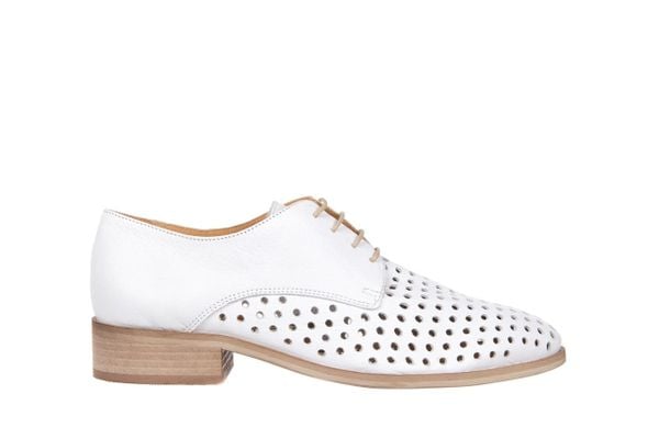 Białe półbuty marki Bayla. Ażurowe cholewki wykonane są z miękkiej skóry naturalnej. Lekkie i wygodne zapewnią komfort w trakcie codziennego użytkowania.- wykonane ze skóry naturalnej- białe, ażurowe cholewki- sznurowane z przodu- skórzana wyściółka- precyzyjnie wykonane- zwężane noski- miękka wkładka
