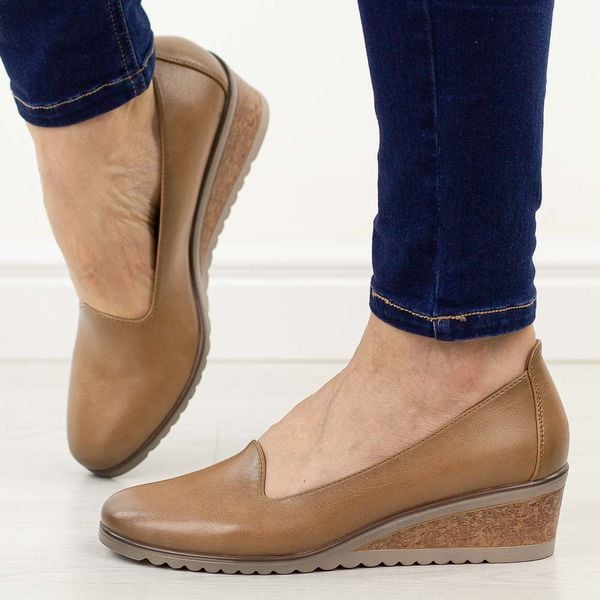 Beżowe pu półbuty damskie na koturnie Potocki 12276