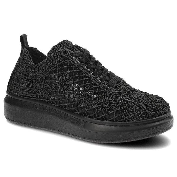 Półbuty damskie Artiker, tekstylna cholewka z ażurowym koronkowym wzorem klasyczne sznurowanie podwyższona platforma, czarne, 50C1114