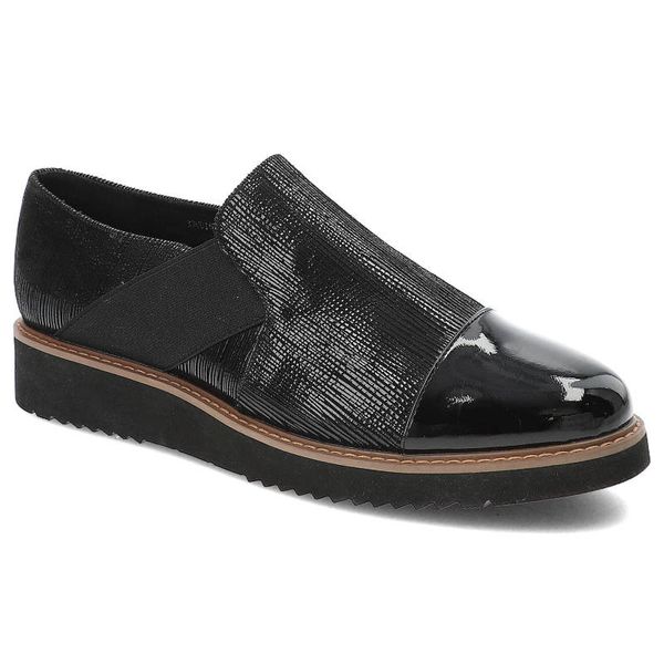 Półbuty damskie Lamelia, wsuwane z lakierowanym elementem i na płaskiej podeszwie, czarne, 39C818