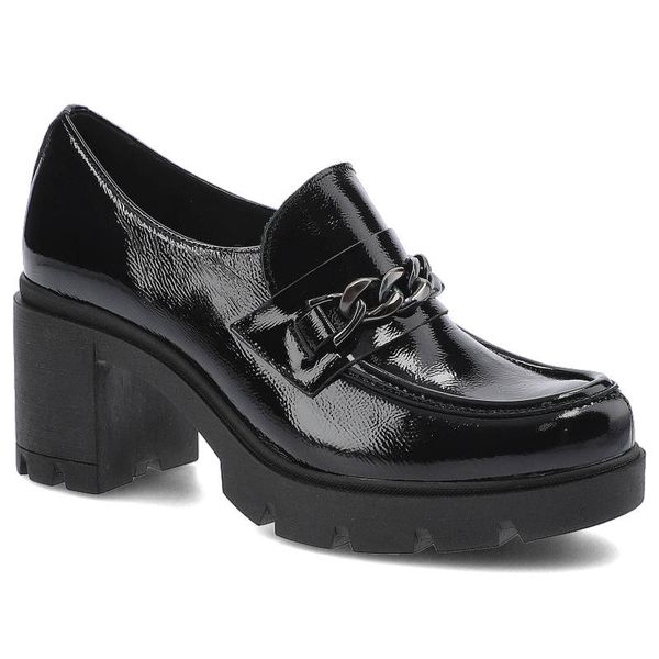 Półbuty damskie Lemar, lakierowana cholewka o gładkim wykończeniu dekoracyjny łańcuch na podbiciu stabilny obcas, czarne, 20095-Naplak