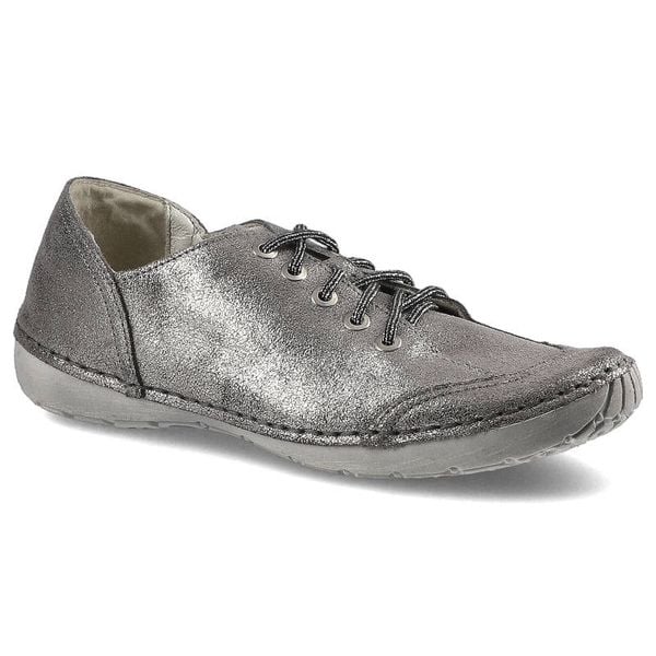 Półbuty damskie Karino, skóra naturalna na płaskiej podeszwie i ze sznurowaniem, szaro-srebrne, 1592-127-P