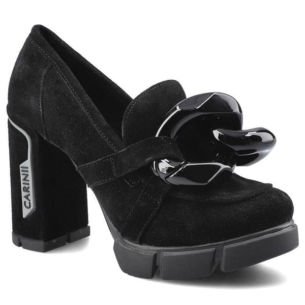 Półbuty damskie Carinii, Wykonane z naturalnej skóry zamszowej z miękką cholewką klasycznym wycięciem ozdobnym metalowym elementem na przodzie oraz m